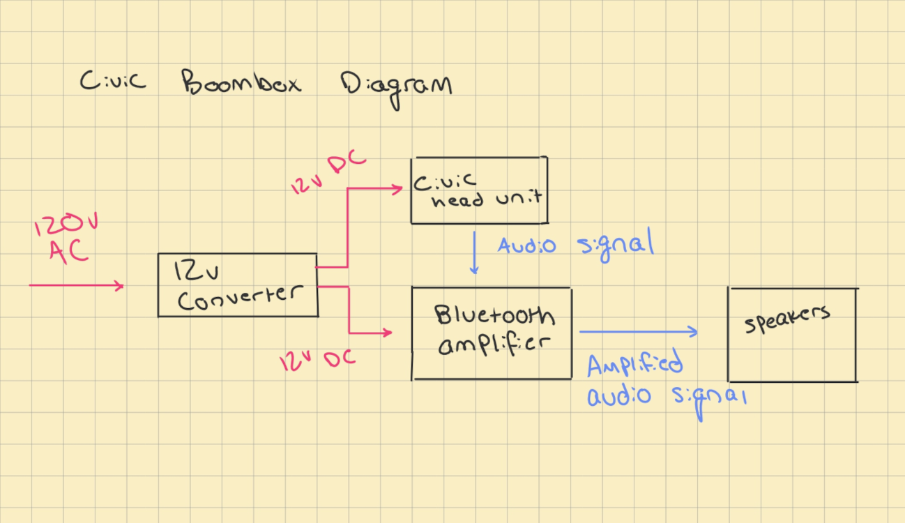So far, the only components decided upon are my Civic's head unit and a 12V converter.